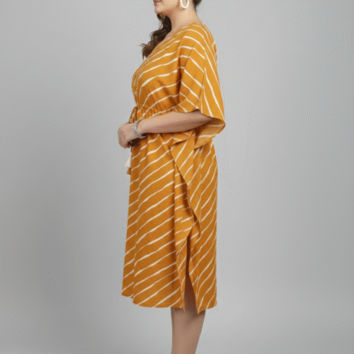 Inspired by the rhythmic patterns of sand dunes, the iconic “Leher” (wave) tie-dye print brings a burst of energy to your wardrobe. Made from Muslin—this kaftan is incredibly soft, lightweight, and becomes even gentler with every wash.